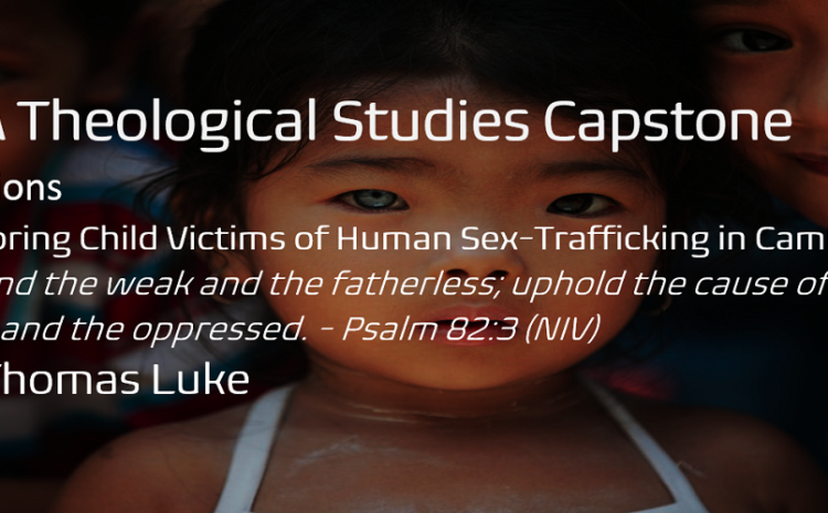 Defend the weak and the fatherless;  uphold the cause of the poor and the oppressed. – Psalm 82:3 (NIV) by Thomas Luke | Instructor of Theological Studies at Genesis University Introduction According to leading research, the country of Cambodia is at the top list of countries where pedophiles prey on young children. Ignoring the suffering of… Continue reading Missions: Restoring Child Victims of Human Sex-Trafficking in Cambodia